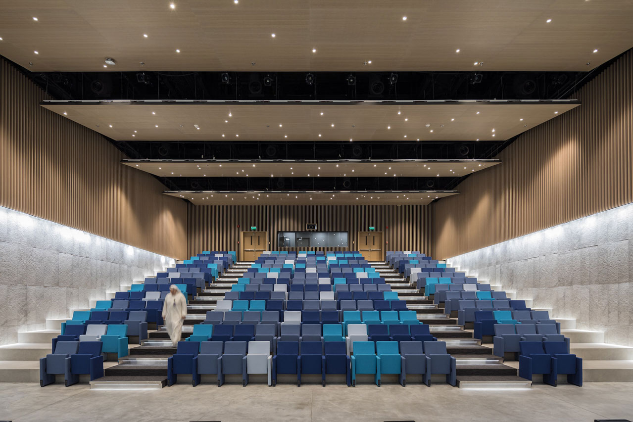 Avec une superficie de plus de 4 000 mètres carrés, ce bâtiment innovant comprend 32 salles de classe, 14 salles informatiques, une bibliothèque, un réfectoire, une cafétéria, de nombreuses salles de repos et toilettes, des salles de prière, des salles de fitness et un auditorium équipé de sièges Figueras.