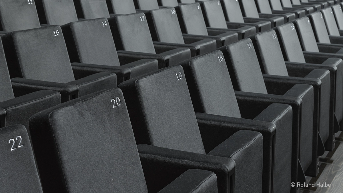 In the balcony, a more compact version of the seat was installed, featuring side panels that extend nearly to the floor to maintain visual alignment and the same ventilation system. With a flexible capacity of up to 600 seats, the first two rows being removable, and a black velvet finish with embroidered numbering on the backrest, the project showcases Figueras’ ability to hybridize its catalog models to solve specific design and functional challenges.