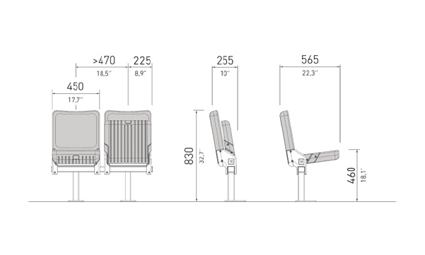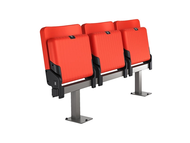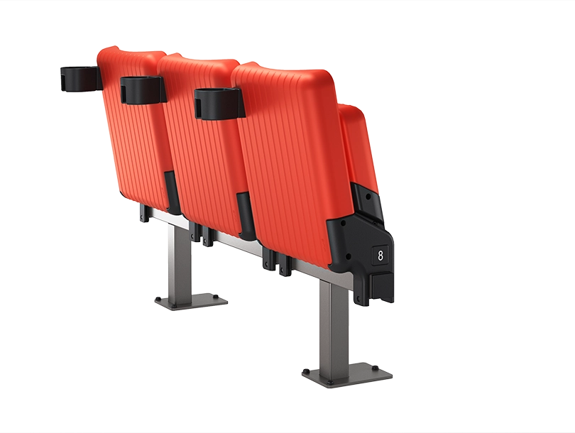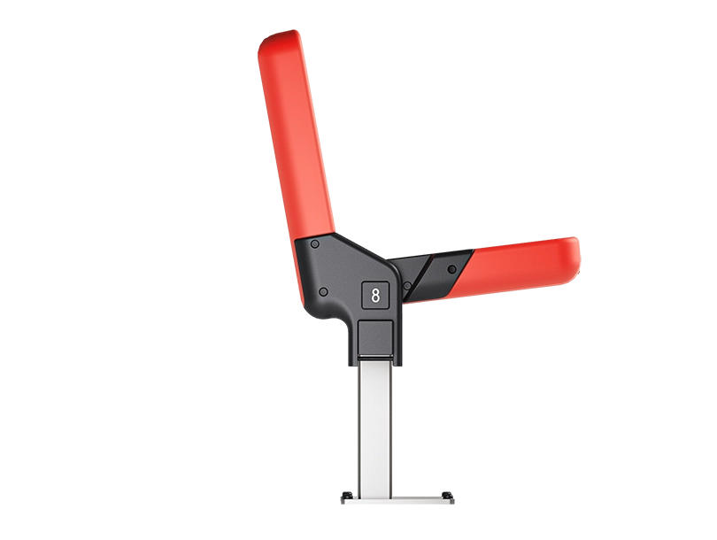Its beam-mounted fixing system, using two M8 bolts, enables fast and precise installation with adjustable seat spacing. KAIROS is compatible with both fixed configurations and retractable seating systems, adapting to different grandstand layouts.